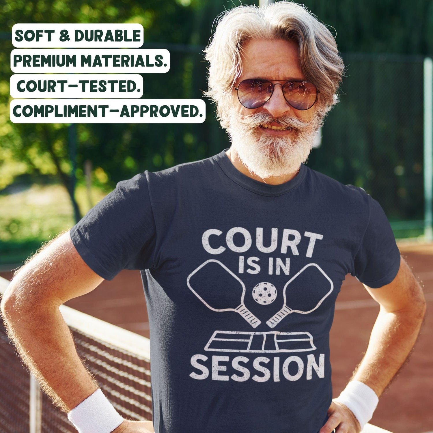 We choose fabrics that are comfortable, breathable, and built to last — the kind you’ll want to wear to the courts and keep on afterward.